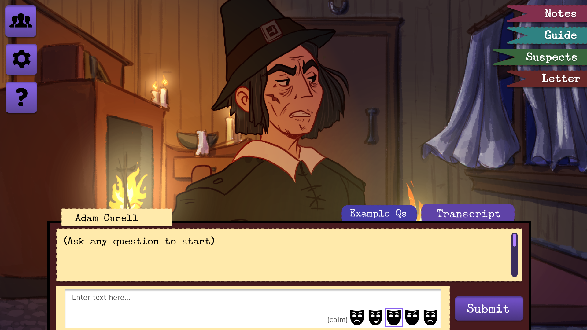 Hysteria in Howlsbend, a Narrative-Driven interactive experience powered by ChatGPT. When the beloved Reverend of the town of Howlsbend is affected by witchcraft, the Player must take on the role of the Deputy Governor of Massachusetts and interview the three suspects to discover who, if anyone, is responsible.
